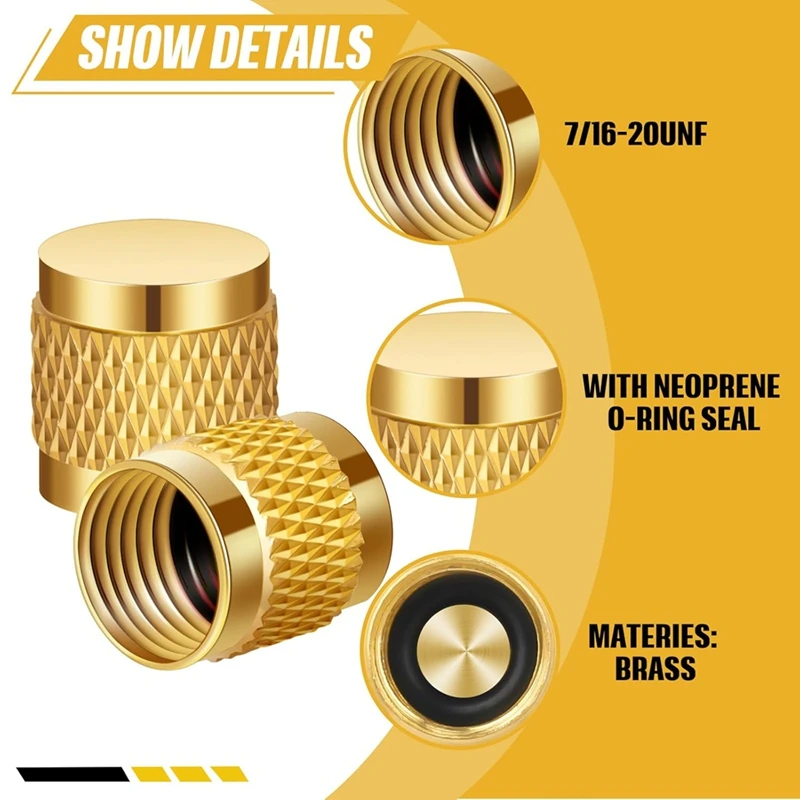 WFF 1/4 Flare Cover, Round Brass With Neoprene O-Ring Seal, HVAC Valve Cover, Refrigerant Lock Cover, HVAC Lock Cover