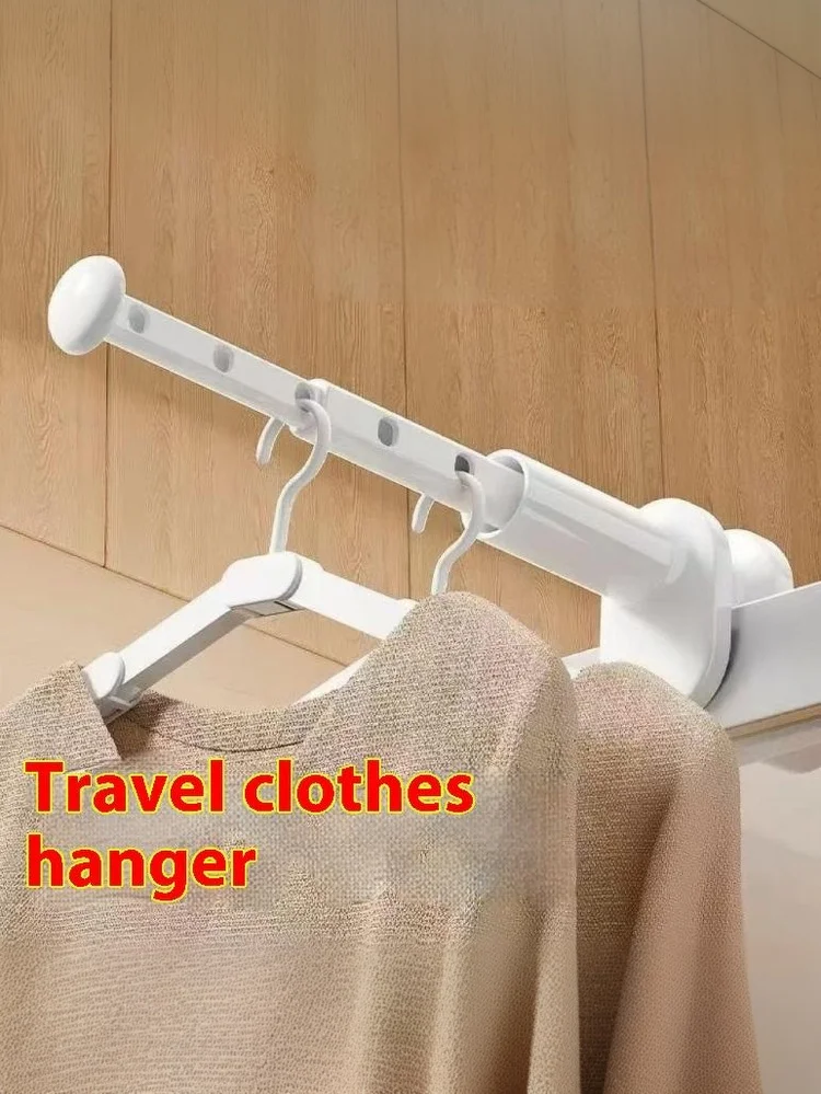 5 This folding clothes rack is made of ABS material, equipped with a telescopic design and hanging holes, which can firmly fix your clothes without drilling.