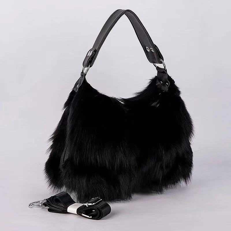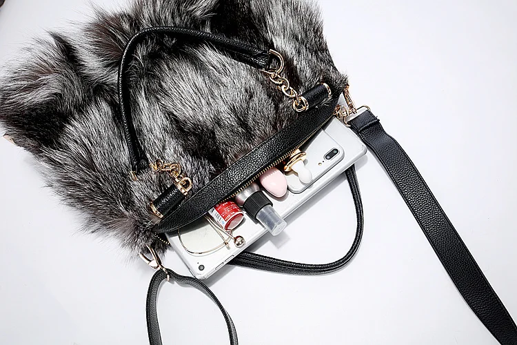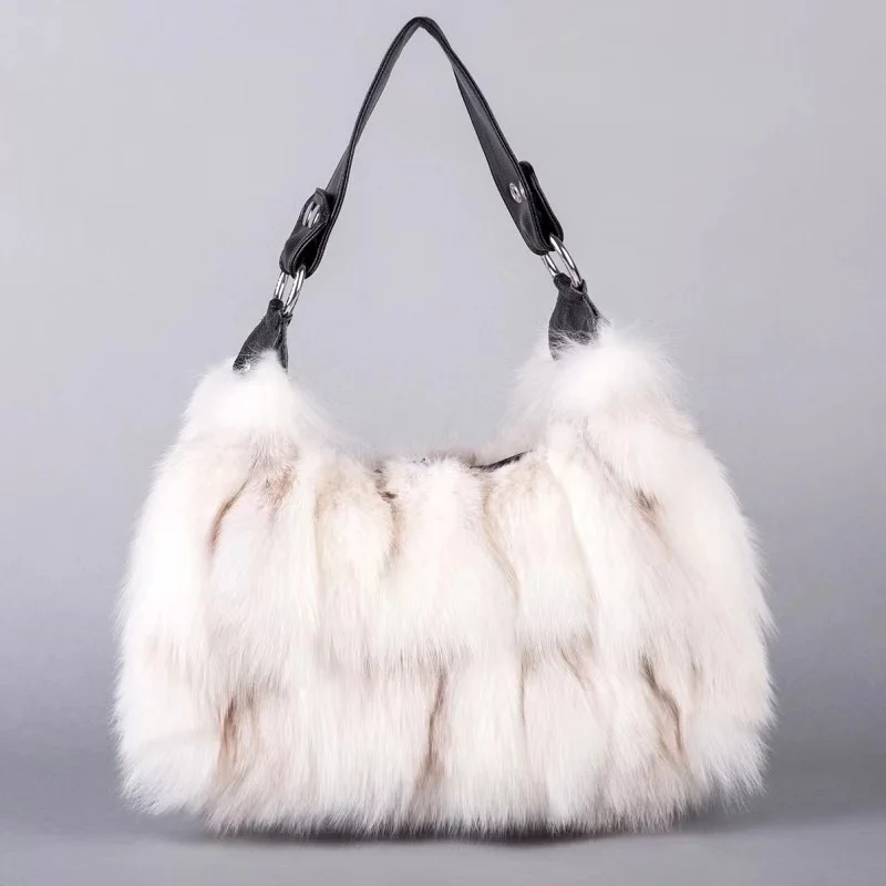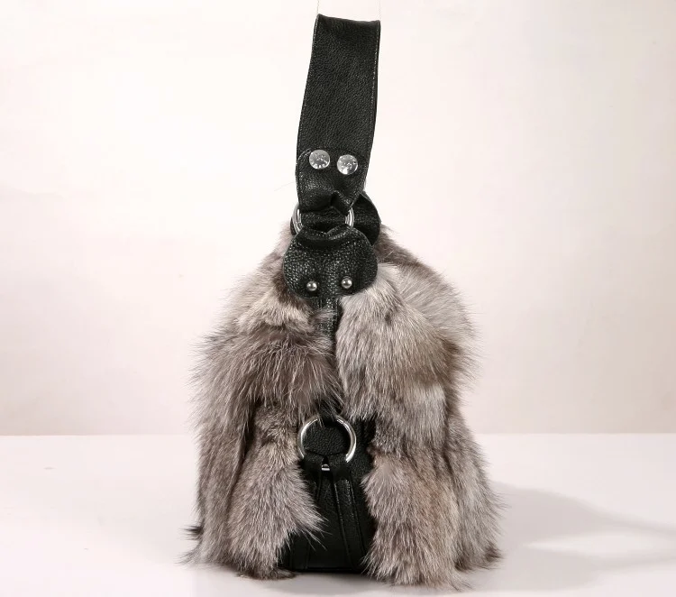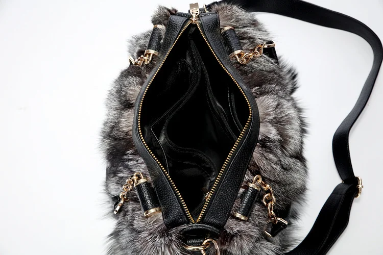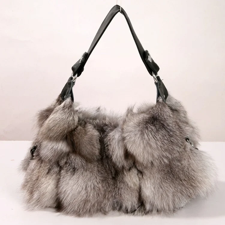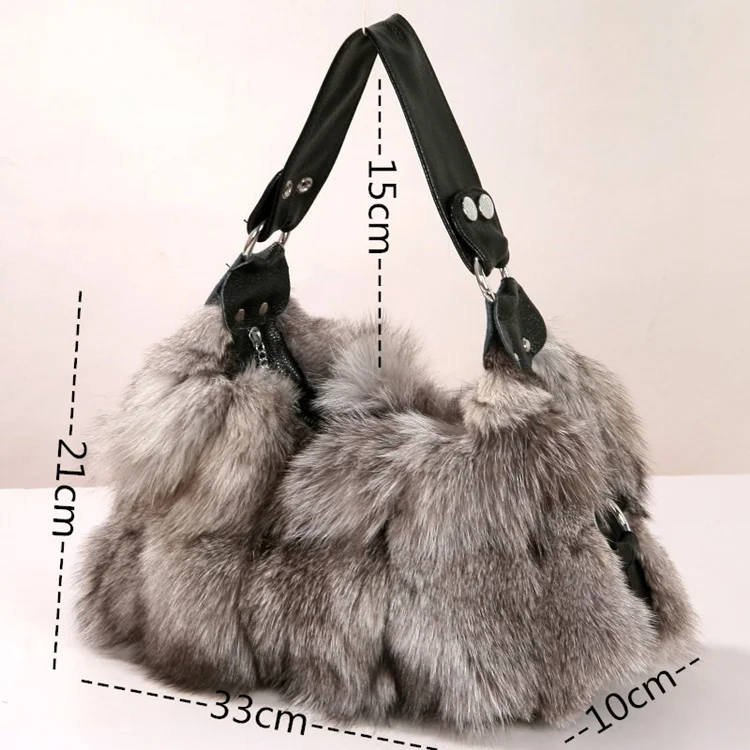 Women’s Fur Bag Winter Fox Fur Bag Fashion Fur Handbag Ladies Bags Purses Women Shoulder Bag Real Silver Fox Fur Messenger Bags