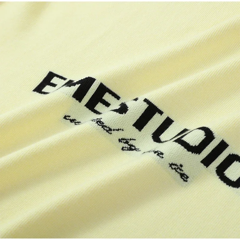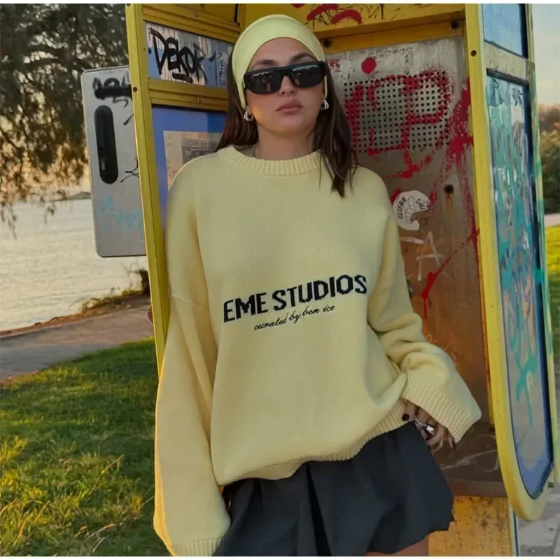 The elegant yellow letter print adds a touch of sophistication to this casual knitwear piece.