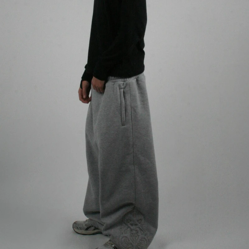 Y2K Retro Men Jogging Pants Double Waist Poker Embroidery Unisex Sweatpants Gothic Hip Hop Streetwear Casual Baggy Sagging Pants