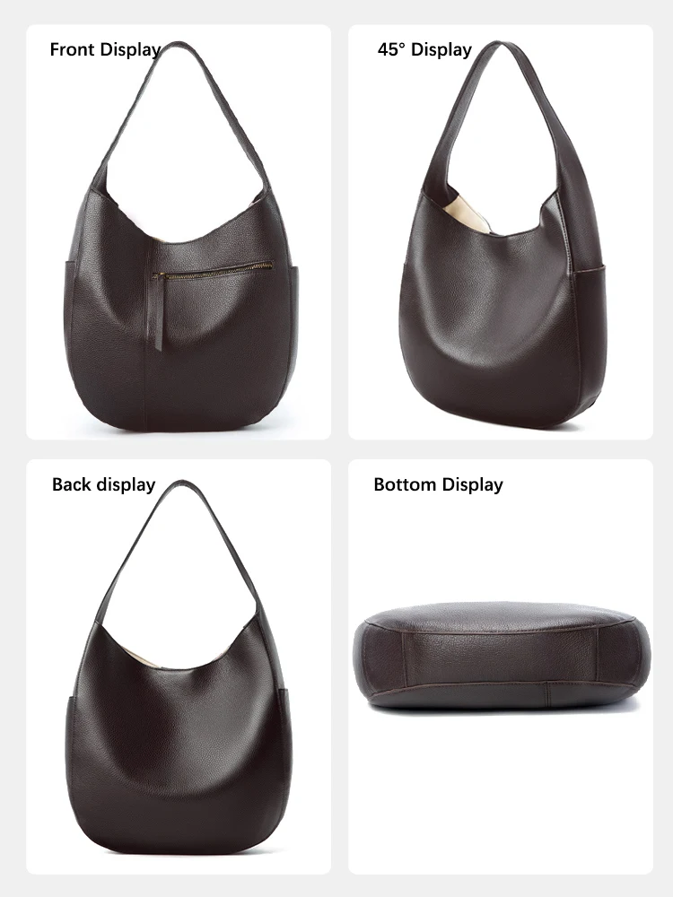Zency Women’s Genuine Leather Top Quality Large Hobo Bag Shoulder Commuters Handbag Designer Bag European n American Style Totes